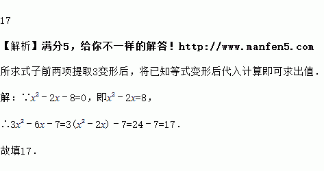 已知x2﹣2x﹣8=0,那么3x2﹣6x﹣7=_____.