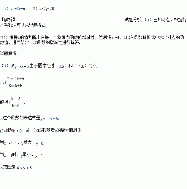 一次函数的图像经过点(2,2)和(-1,8).试求: