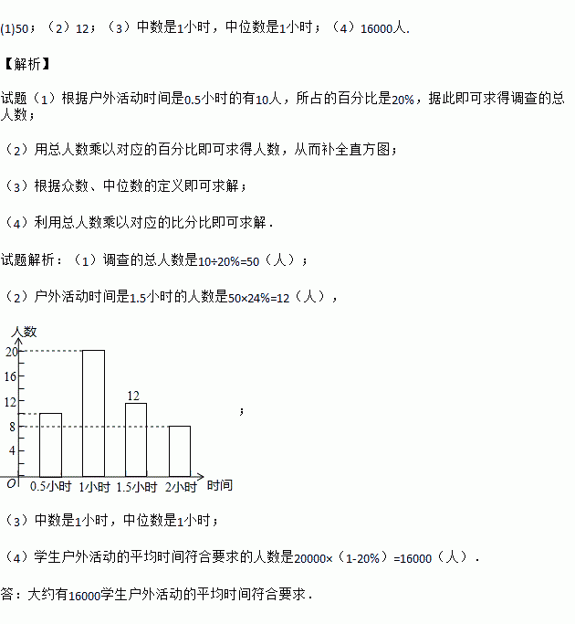 (4)若该市共有20000名学生,大约有多少学生户外活动的平均时间符合要求?