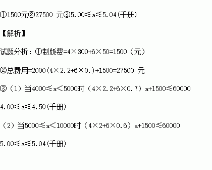③如果该校希望印数至少为4千册,总费用至多为60000元,求印数的取值范围。(精确到0.01千册)
