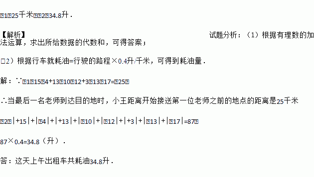 (2)若出租车的耗油量为0.4升/千米,这天上午出租车共耗油多少升?