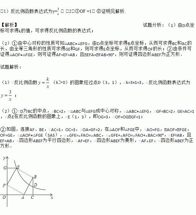 (2)若△ABC与△EFG成中心对称,且△EFG的边FG在y轴的正半轴上,点E在这个函数的图象上.