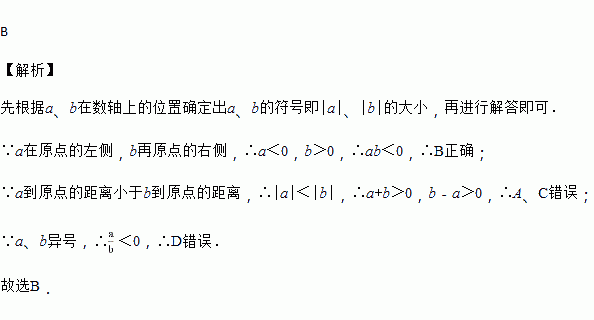 A. a+b<0 B. ab<0 C. b﹣a<0 D. ![]()