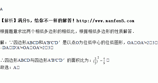 如图,四边形ABCD和A′B′C′D′是以点O为位似中心的位似图形,若OB∶OB′=2∶3,则四边形ABCD与四边形A′B′C′D′的面积比为( )