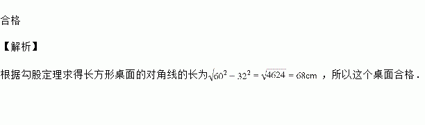 木工做一个长方形桌面, 量得桌面的长为60cm,宽为32cm,对角线为68cm,这个桌面_____ (填”合格”或”不合格”).