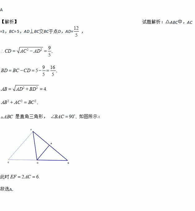 ,延长BC至E使得CE=BC,将△ABC沿AC翻折得到△AFC,连接EF,则线段EF的长为