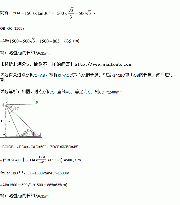 如图,某高速公路建设中需要确定隧道AB的长度.已知在离地面1500m高度C