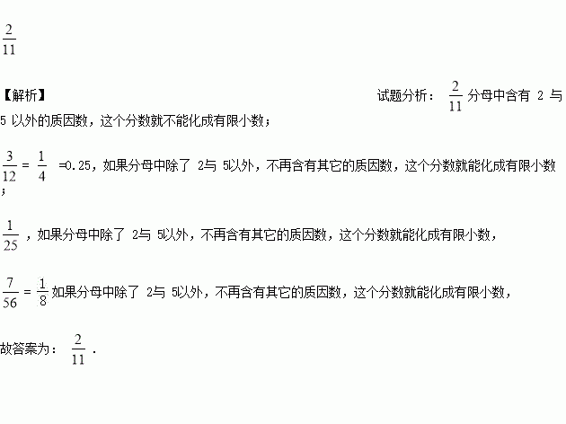 在分数、、、中,不可以化为有限小数的分数是______.