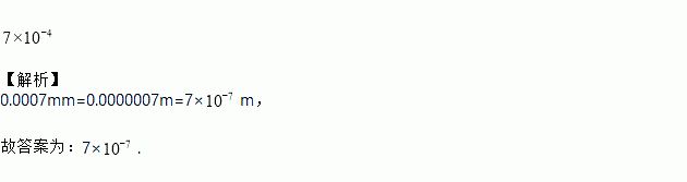 肥皂泡额泡壁厚度大约是0.0007mm,0.0007mm用科学记数法表示为___________mm.