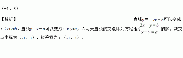 若方程组的解是,则直线y=-2x+b与直线y=x-a的交点坐标是______.