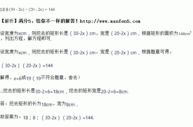 有一个矩形铁片,长是,宽是,中间挖去的矩形,剩下的铁框四周一样宽,若设宽度为,那么挖去的矩形长是________,宽是________,根据题意可得方程________.