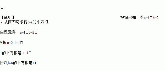 已知a是1的算术平方根,b是8的立方根,求b-a的平方根.