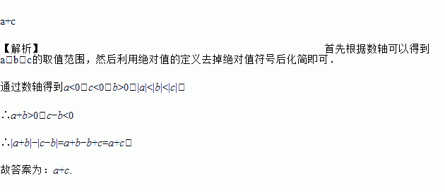 有理数a、b、c在数轴上的位置如图,化简|a+b|-|c-b|的结果为__________.