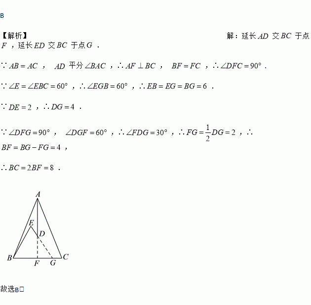 如图,在中, , 、是内两点, 平分, ,若, ,则的长度是( ).
