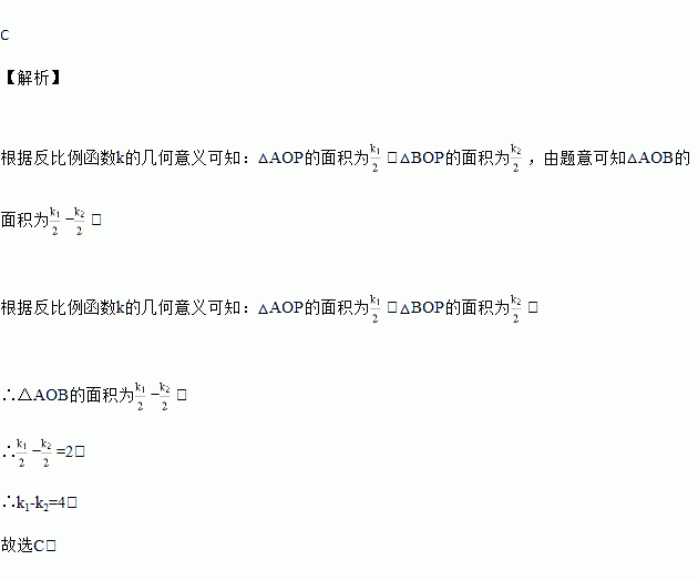 (x>0)的图象分别交于点A,B,连接OA,OB,已知△OAB的面积为2,则k1﹣k2的值为( )