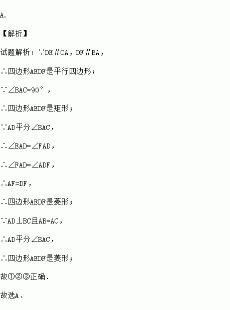 ③如果AD⊥BC 且AB=AC,那么四边形AEDF是菱形。
