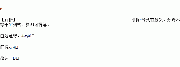 A. x≠﹣4 B. x≠4 C. x≤﹣4 D. x≤4