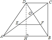在直角梯形ABCD中,AB∥CD,∠ABC=90°,∠DAB=60°,AB=2CD,对角线AC与BD相交于点O,线段OA,OB的中点分别为E,F.