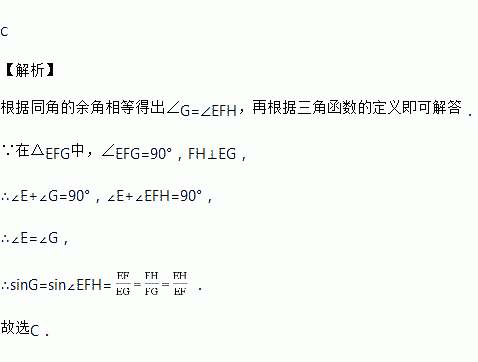 如图,在△EFG中,∠EFG=90°,FH⊥EG,下面等式中,错误的是( )