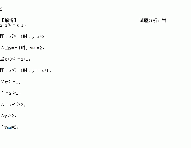 对于实数a,b,我们定义符号max{a,b}的意义为:当a≥b时,max{a,b}=a;当a<b时,max{a,b]=b;如:max{4,﹣2}=4,max{3,3}=3,若关于x的函数为y=max{x+3,﹣x+1},则该函数的最小值是_____.