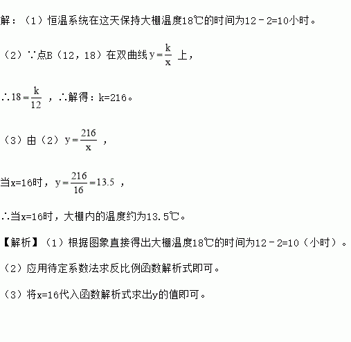 (1)恒温系统在这天保持大棚内温度18℃的时间有多少小时?