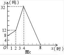 (3)若4时后恰好只有4条输入传送带和4条输出传送带在工作(至货物全部输出完毕为止),请在图c中把相应的图象补充完整.