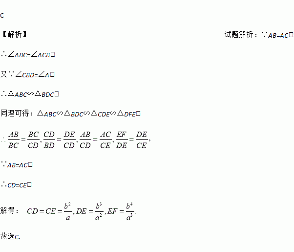 如图,在△ABC中,AB=AC=a,BC=b(a>b).在△ABC内依次作∠CBD=∠A,∠DCE=∠CBD,∠EDF=∠DCE.则EF等于( )