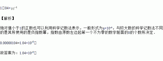 科学家发现一种病毒的直径为0.000104米,用科学记数法表示为 米.