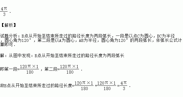 (2014•安徽模拟)如图,一块等边三角形的木板,边长为1,现将木板沿水平线翻滚,那么B点从开始至结束所走过的路径长度为 .