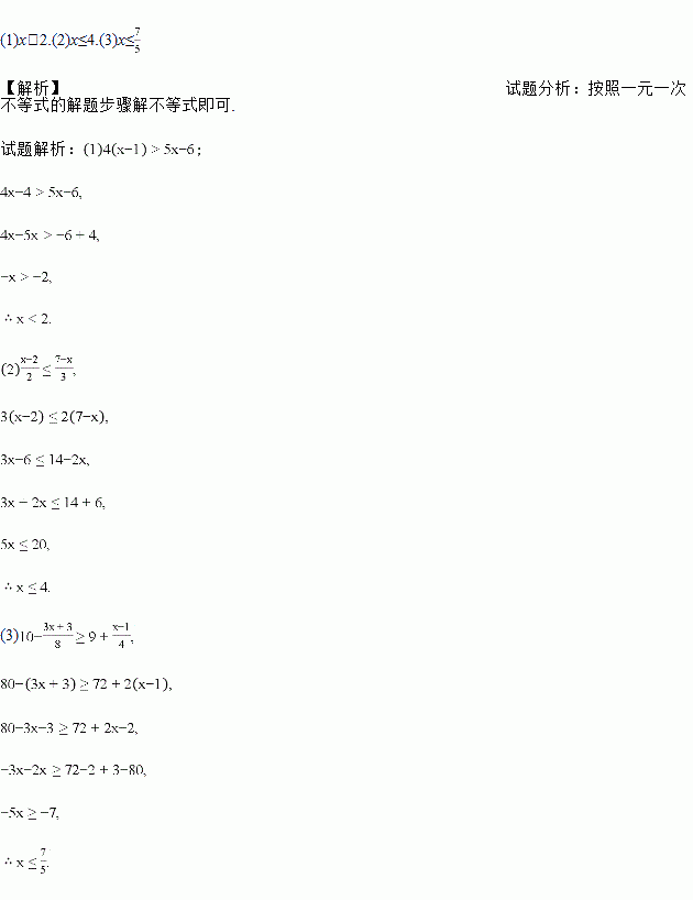 (1)4(x-1)>5x-6;