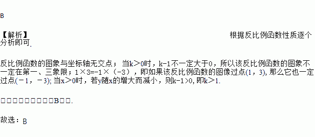 B. 当k>0时,该反比例函数的图像在第一、三象限
