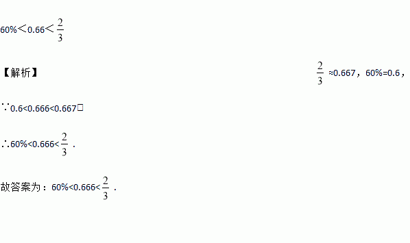 将0.66, ,60%按从小到大的顺序排列:_________(用“<”连接).