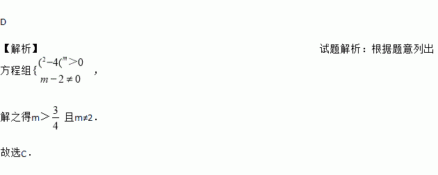 A. m> B. m≥ C. m>且m≠2 D. m≥且m≠2