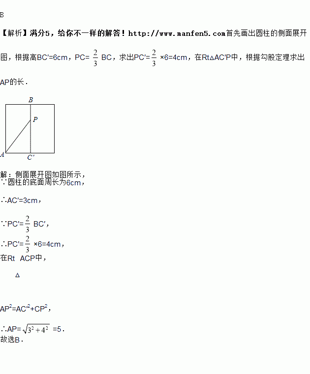 BC.一只蚂蚁从A点出发沿着圆柱体的表面爬行到点P的最短距离是( )