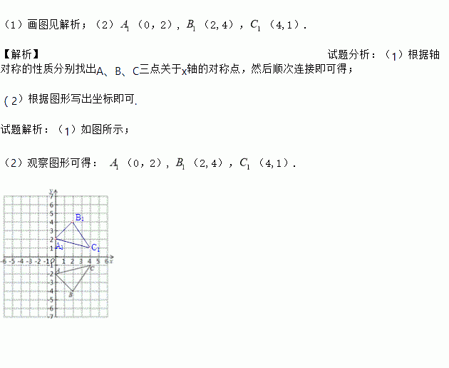 (1)画出与△ABC关于x轴对称的图形;