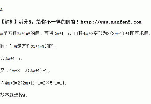 若m是方程2x+1=5的解,则4m+3的值为( )
