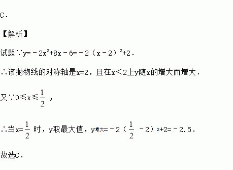 已知0≤x≤,那么函数y=﹣2x2+8x﹣6的最大值是( )