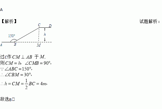 某商场一楼与二楼之间的手扶电梯示意图如图所示,其中AB,CD分别表示一楼、二楼地面的水平线,∠ABC=150°,BC的长是8 m,则乘电梯从点B到点C上升的高度h是( )