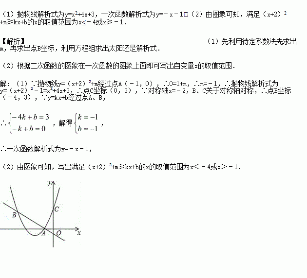 (2)根据图象,写出满足(x+2)2+m≥kx+b的x的取值范围.
