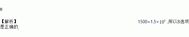 B 【解析】1500=1.5×,所以B选项是正确的.