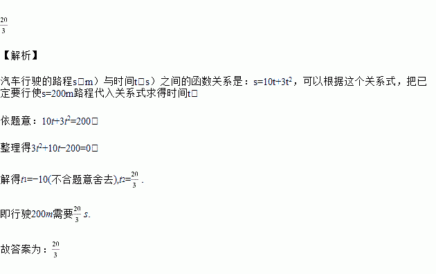 某辆汽车在公路上行驶,它行驶的路程和时间之间的关系为:,那么行驶需要________.
