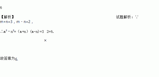 已知m+n=3,m﹣n=2,则m2﹣n2=__.