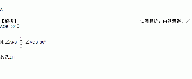 A 【解析】试题解析:由题意得,∠AOB=60°, 则∠APB=∠AOB=30°. 故选A.