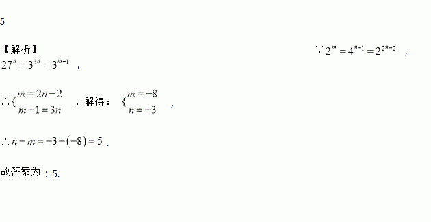 已知2m=4n-1,27n=3m-1,则n-m=____.