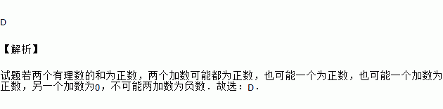 C. 一个加数正数,另一个加数为零 D. 两个加数不能同为负数