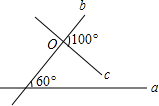 平面上直线a、c与b相交(数据如图),当直线c绕点O旋转某一角度时与a平行,则旋转的最小度数是( )