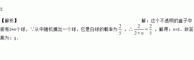 在一个不透明的盒子中装有2个白球,n个黄球,它们除颜色不同外,其余均相同.若从中随机摸出一个球,它是白球的概率为,则n =___________.