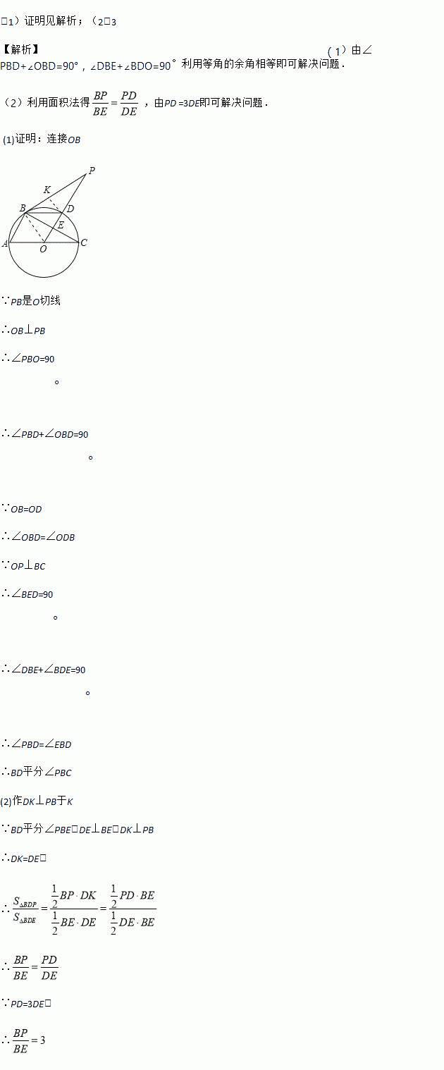 如图,△ABC内接于⊙O,AC为⊙O的直径,PB是⊙O的切线,B为切点,OP⊥BC,垂足为E,交⊙O于D,连接BD.
