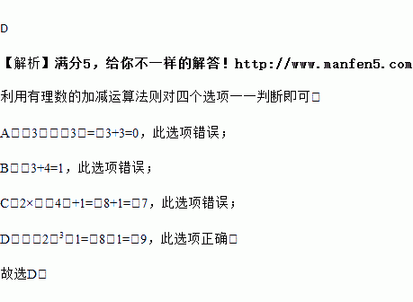 C. 2×(﹣4)+1=7 D. (﹣2)3﹣1=﹣9
