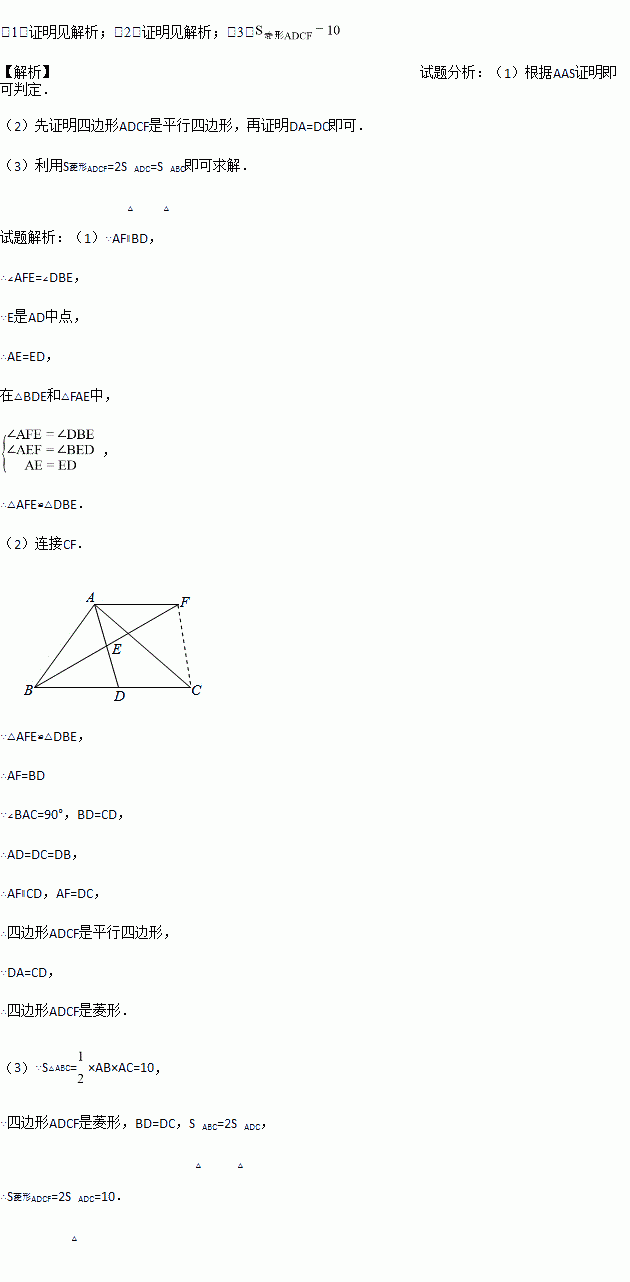 如图,在Rt△ABC中,∠BAC=90°,D是BC的中点,E是AD的中点, 过点A作AF∥BC交BE的延长线于点F.